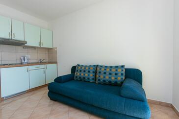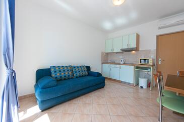Az Apartman 5 főt tud fogadni. Az ágyak a/az 1 hálószobában, és a nappaliban/ben vannak, melynek méretei 30m2. A forró nyári estéket a vendégek saját balkonukon élvezhetik. Az apartmanból tengerre néző kilátás nyílik. A közös barbecue-helyet a vendég szabadon használhatja.