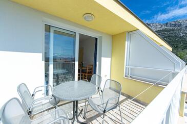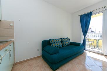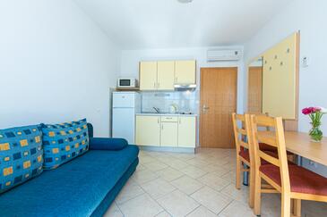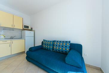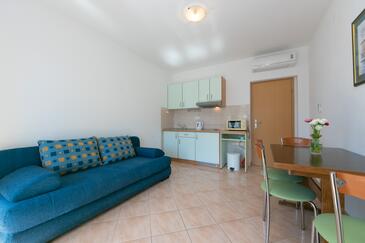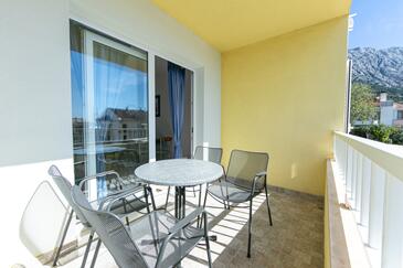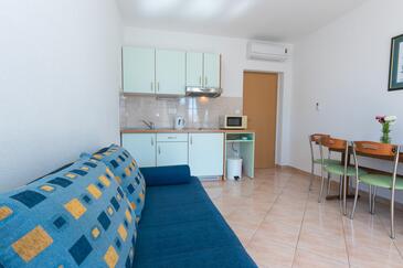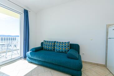 Az Apartman 5 főt tud fogadni. Az ágyak a/az 1 hálószobában, és a nappaliban/ben vannak, melynek méretei 30m2. A forró nyári estéket a vendégek saját balkonukon élvezhetik. Az apartmanból tengerre néző kilátás nyílik. A közös barbecue-helyet a vendég szabadon használhatja.