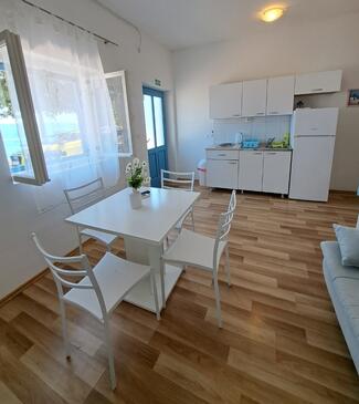 Az Apartman 4 főt tud fogadni. Az ágyak a/az 1 hálószobában, és a nappaliban/ben vannak, melynek méretei 30m2. A forró nyári estéket a vendégek saját teraszukon élvezhetik. Az apartmanból tengerre néző kilátás nyílik. A közös barbecue-helyet a vendég szabadon használhatja. A szállásegységbe lehetséges háziállatot hozni felár ellenében.