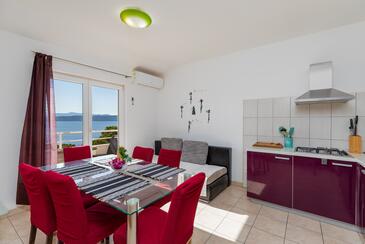 Az Apartman 4 főt tud fogadni. Az ágyak a/az 1 hálószobában, és a nappaliban/ben vannak, melynek méretei 33m2. A forró nyári estéket a vendégek saját teraszukon élvezhetik. Az apartmanból tengerre néző kilátás nyílik. A közös barbecue-helyet a vendég szabadon használhatja. A szállásegységbe lehetséges háziállatot hozni felár ellenében.