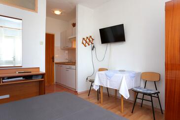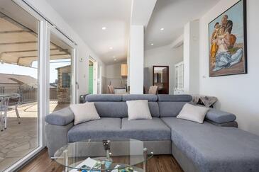 Az Apartman 4 főt tud fogadni. Az ágyak a/az 2 hálószobában vannak, melynek méretei 56m2. A forró nyári estéket a vendégek saját teraszukon élvezhetik. Az apartmanból tengerre néző kilátás nyílik. A közös barbecue-helyet a vendég szabadon használhatja. A szállásegységbe lehetséges háziállatot hozni felár ellenében.