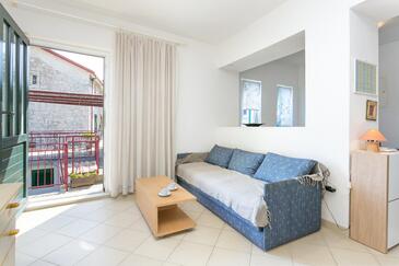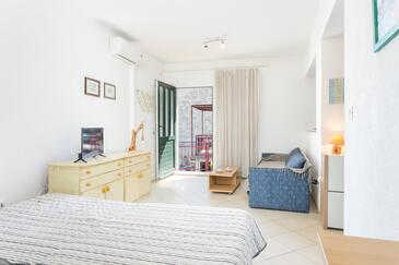 Az Stúdió 4 főt tud fogadni. Az ágyak a/az 1 hálószobában, és a nappali és étkezőban/ben vannak, melynek méretei 26m2. A forró nyári estéket a vendégek saját teraszukon élvezhetik. A stúdióból tengerre néző kilátás nyílik. A közös barbecue-helyet a vendég szabadon használhatja. A szállásegységbe lehetséges háziállatot hozni felár ellenében. A szállásegység egyes helyiségei elkülönülnek a szállásegység többi részétől.