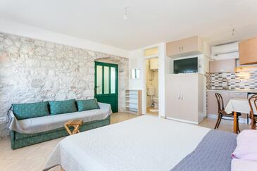 Az Ház 8 főt tud fogadni. Az ágyak a/az 2 hálószobában, és a nappaliban/ben vannak, melynek méretei 69m2. A forró nyári estéket a vendégek saját teraszukon élvezhetik. A házból tengerre néző kilátás nyílik. A közös barbecue-helyet a vendég szabadon használhatja. A szállásegységbe lehetséges háziállatot hozni felár ellenében.