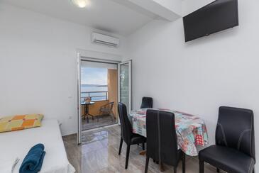 Az Apartman 4 főt tud fogadni. Az ágyak a/az 1 hálószobában, és a étkezőban/ben vannak, melynek méretei 37m2. A forró nyári estéket a vendégek saját balkonukon élvezhetik. Az apartmanból tengerre néző kilátás nyílik. A közös barbecue-helyet a vendég szabadon használhatja.