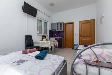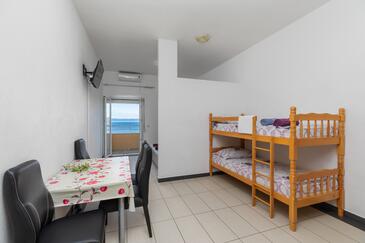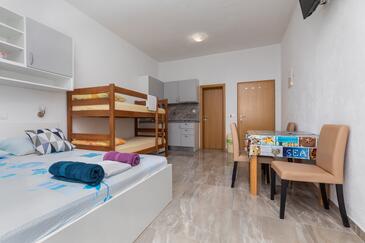 Az Apartman 4 főt tud fogadni. Az ágyak a/az 1 hálószobában, és a étkezőban/ben vannak, melynek méretei 37m2. A forró nyári estéket a vendégek saját balkonukon élvezhetik. Az apartmanból tengerre néző kilátás nyílik. A közös barbecue-helyet a vendég szabadon használhatja.