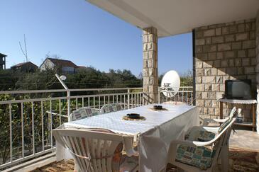 Az Apartman 8 főt tud fogadni. Az ágyak a/az 2 hálószobában, és a étkezőban/ben vannak, melynek méretei 52m2. A forró nyári estéket a vendégek saját teraszukon élvezhetik. A közös barbecue-helyet a vendég szabadon használhatja. A szállásegységbe lehetséges háziállatot hozni felár ellenében.