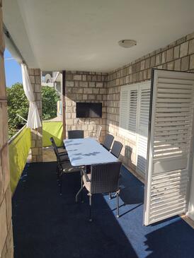 Az Apartman 8 főt tud fogadni. Az ágyak a/az 2 hálószobában, és a étkezőban/ben vannak, melynek méretei 52m2. A forró nyári estéket a vendégek saját teraszukon élvezhetik. A közös barbecue-helyet a vendég szabadon használhatja. A szállásegységbe lehetséges háziállatot hozni felár ellenében.