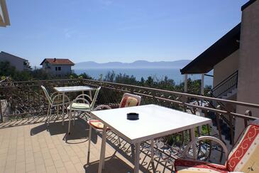 Az Apartman 6 főt tud fogadni. Az ágyak a/az 3 hálószobában vannak, melynek méretei 54m2. A forró nyári estéket a vendégek saját teraszukon élvezhetik. Az apartmanból tengerre néző kilátás nyílik. A közös barbecue-helyet a vendég szabadon használhatja.