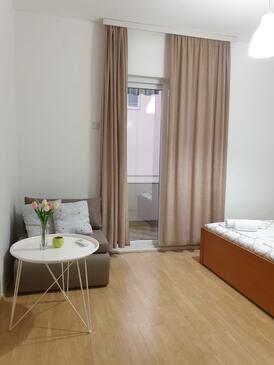 Az Apartman 8 főt tud fogadni. Az ágyak a/az 3 hálószobában vannak, melynek méretei 67m2. A forró nyári estéket a vendégek saját balkonukon élvezhetik. Az apartmanból tengerre néző kilátás nyílik. A közös barbecue-helyet a vendég szabadon használhatja.
