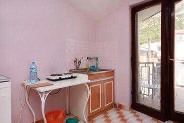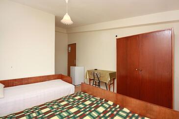 Az Szoba 3 főt tud fogadni. Az ágyak a/az 1 hálószobában vannak, melynek méretei 19m2. Közös konyha használata lehetséges. A forró nyári estéket a vendégek saját balkonukon élvezhetik. A szobából tengerre néző kilátás nyílik. A közös barbecue-helyet a vendég szabadon használhatja. A lefoglalt szállásegység szoba, melyhez saját fürdőszoba tartozik, azonban a konyha közös használatú. A közös konyha használatát tartalmazza az ár..