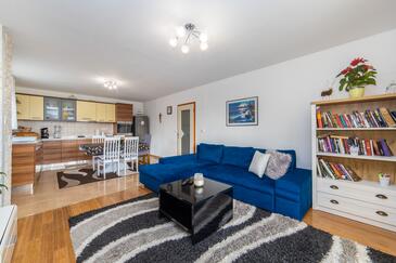 Az Apartman 6 főt tud fogadni. Az ágyak a/az 2 hálószobában, és a nappaliban/ben vannak, melynek méretei 70m2. A forró nyári estéket a vendégek saját teraszukon élvezhetik. Az apartmanból tengerre néző kilátás nyílik. A közös barbecue-helyet a vendég szabadon használhatja.