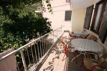 Az Apartman 5 főt tud fogadni. Az ágyak a/az 1 hálószobában, és a nappaliban/ben vannak, melynek méretei 24m2. A forró nyári estéket a vendégek saját balkonukon élvezhetik. Az apartmanból tengerre néző kilátás nyílik. A közös barbecue-helyet a vendég szabadon használhatja. A szállásegység egyes helyiségei elkülönülnek a szállásegység többi részétől.