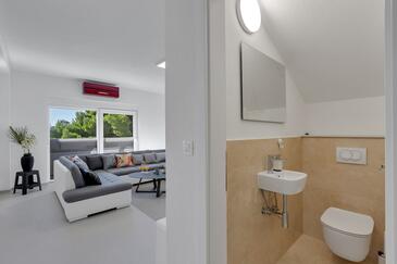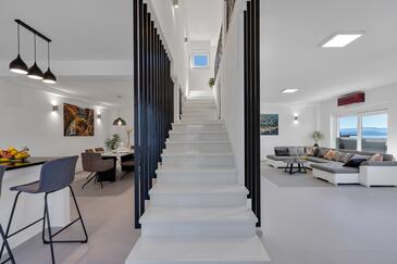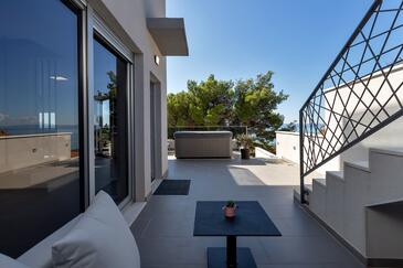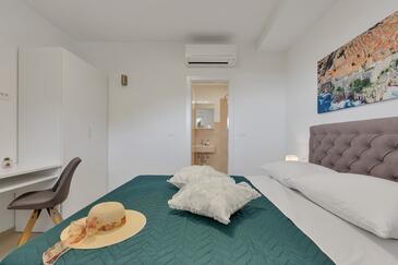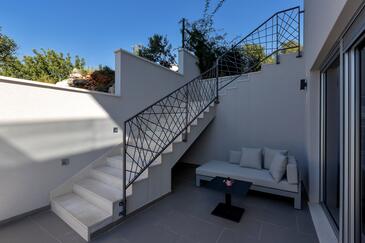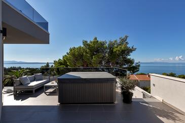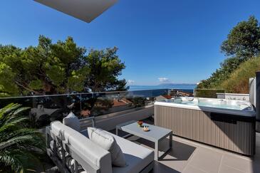 Az Apartman 6 főt tud fogadni. Az ágyak a/az 3 hálószobában vannak, melynek méretei 134m2. A forró nyári estéket a vendégek saját teraszukon élvezhetik. Az apartmanból tengerre néző kilátás nyílik. A közös barbecue-helyet a vendég szabadon használhatja. A lefoglalt szállásegység vendégeinek az érkezés napján a helyszínen letétet kell fizetniük (az összeg a honlapon fel van tüntetve).