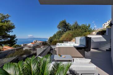 Az Apartman 6 főt tud fogadni. Az ágyak a/az 3 hálószobában vannak, melynek méretei 134m2. A forró nyári estéket a vendégek saját teraszukon élvezhetik. Az apartmanból tengerre néző kilátás nyílik. A közös barbecue-helyet a vendég szabadon használhatja. A lefoglalt szállásegység vendégeinek az érkezés napján a helyszínen letétet kell fizetniük (az összeg a honlapon fel van tüntetve).