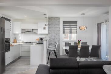 Az Ház 6 főt tud fogadni. Az ágyak a/az 2 hálószobában, és a nappaliban/ben vannak, melynek méretei 100m2. A forró nyári estéket a vendégek saját teraszukon élvezhetik. A házból tengerre néző kilátás nyílik. A teljes élvezet és kikapcsolódás érdekében van saját barbecue hely is, csakis e szálláshely vendégei számára. A vendégek itt tartózkodásuk ideje alatt kikapcsolódás céljából használhatják a magán medencét. A szállásegységbe lehetséges háziállatot hozni felár ellenében.