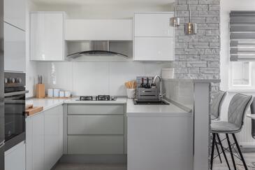 Az Ház 6 főt tud fogadni. Az ágyak a/az 2 hálószobában, és a nappaliban/ben vannak, melynek méretei 100m2. A forró nyári estéket a vendégek saját teraszukon élvezhetik. A házból tengerre néző kilátás nyílik. A teljes élvezet és kikapcsolódás érdekében van saját barbecue hely is, csakis e szálláshely vendégei számára. A vendégek itt tartózkodásuk ideje alatt kikapcsolódás céljából használhatják a magán medencét. A szállásegységbe lehetséges háziállatot hozni felár ellenében.