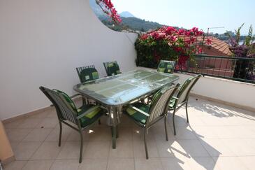 Az Apartman 8 főt tud fogadni. Az ágyak a/az 3 hálószobában, és a nappaliban/ben vannak, melynek méretei 68m2. A forró nyári estéket a vendégek saját teraszukon élvezhetik. Az apartmanból tengerre néző kilátás nyílik. A közös barbecue-helyet a vendég szabadon használhatja.