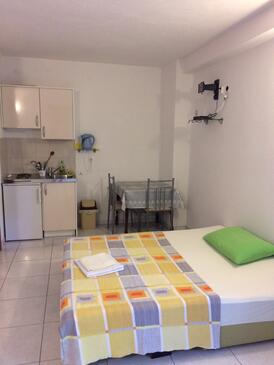 Az Stúdió 4 főt tud fogadni. Az ágyak a/az 1 hálószobában vannak, melynek méretei 25m2. A stúdióból tengerre néző kilátás nyílik. A közös barbecue-helyet a vendég szabadon használhatja. A lefoglalt szállásegység közös teraszt használ..