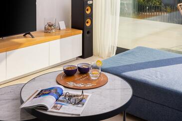 Az Ház 8 főt tud fogadni. Az ágyak a/az 3 hálószobában, és a nappaliban/ben vannak, melynek méretei 122m2. A forró nyári estéket a vendégek saját teraszukon élvezhetik. A házból tengerre néző kilátás nyílik. A teljes élvezet és kikapcsolódás érdekében van saját barbecue hely is, csakis e szálláshely vendégei számára. A vendégek itt tartózkodásuk ideje alatt kikapcsolódás céljából használhatják a magán medencét. A szállásegységbe lehetséges háziállatot hozni, ennek költségét a foglalási díj tartalmazza. A lefoglalt szállásegység vendégeinek az érkezés napján a helyszínen letétet kell fizetniük (az összeg a honlapon fel van tüntetve).