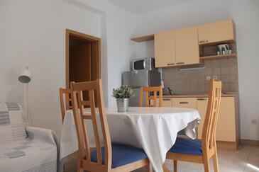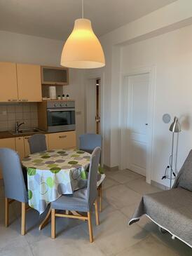 Az Apartman 4 főt tud fogadni. Az ágyak a/az 1 hálószobában, és a étkezőban/ben vannak, melynek méretei 33m2. A forró nyári estéket a vendégek saját teraszukon élvezhetik. Az apartmanból tengerre néző kilátás nyílik. A közös barbecue-helyet a vendég szabadon használhatja. A szállásegységbe lehetséges háziállatot hozni, ennek költségét a foglalási díj tartalmazza.