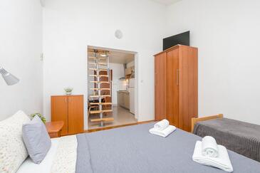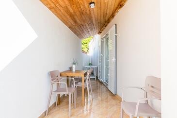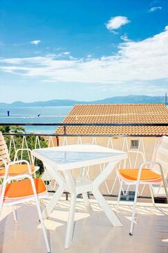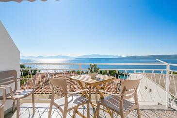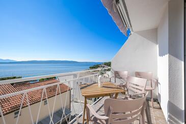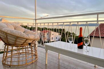Az Apartman 4 főt tud fogadni. Az ágyak a/az 1 hálószobában, és a nappaliban/ben vannak, melynek méretei 31m2. A forró nyári estéket a vendégek saját balkonukon élvezhetik. Az apartmanból tengerre néző kilátás nyílik. A közös barbecue-helyet a vendég szabadon használhatja. A lefoglalt szállásegység közös teraszt használ..