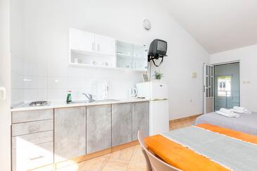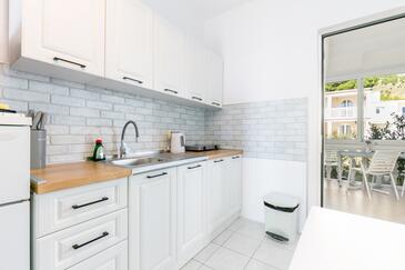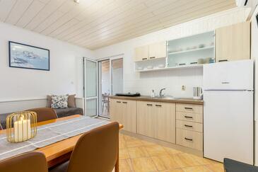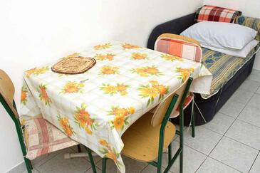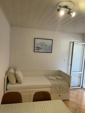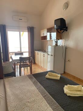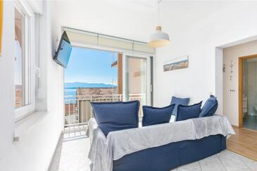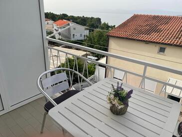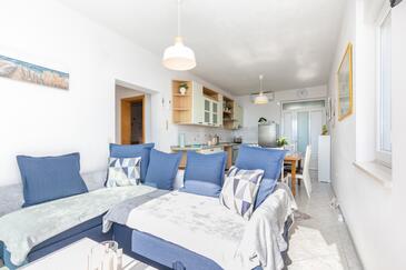 Az Apartman 4 főt tud fogadni. Az ágyak a/az 1 hálószobában, és a nappaliban/ben vannak, melynek méretei 31m2. A forró nyári estéket a vendégek saját balkonukon élvezhetik. Az apartmanból tengerre néző kilátás nyílik. A közös barbecue-helyet a vendég szabadon használhatja. A lefoglalt szállásegység közös teraszt használ..