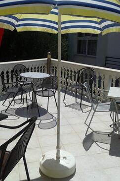Az Apartman 4 főt tud fogadni. Az ágyak a/az 2 hálószobában vannak, melynek méretei 44m2. A forró nyári estéket a vendégek saját balkonukon élvezhetik. Az apartmanból tengerre néző kilátás nyílik. A közös barbecue-helyet a vendég szabadon használhatja. A lefoglalt szállásegység közös teraszt használ..