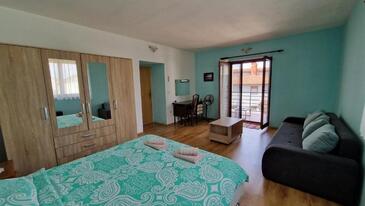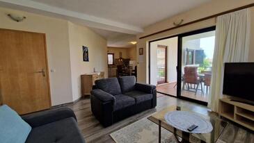 Az Apartman 8 főt tud fogadni. Az ágyak a/az 3 hálószobában vannak, melynek méretei 101m2. A forró nyári estéket a vendégek saját teraszukon élvezhetik. Az apartmanból tengerre néző kilátás nyílik. A közös barbecue-helyet a vendég szabadon használhatja. A szállásegységbe lehetséges háziállatot hozni felár ellenében. A lefoglalt szállásegység vendégeinek az érkezés napján a helyszínen letétet kell fizetniük (az összeg a honlapon fel van tüntetve).