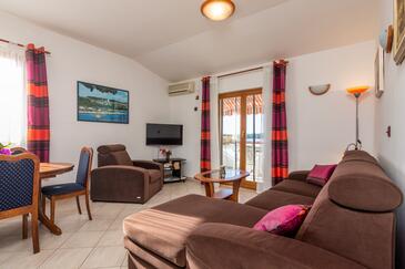 Az Apartman 4 főt tud fogadni. Az ágyak a/az 2 hálószobában vannak, melynek méretei 56m2. A forró nyári estéket a vendégek saját teraszukon élvezhetik. Az apartmanból tengerre néző kilátás nyílik. A közös barbecue-helyet a vendég szabadon használhatja.