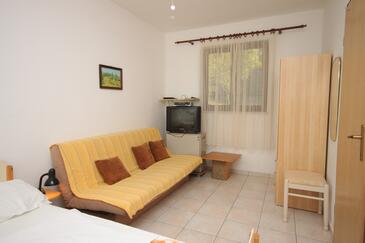 Az Apartman 3 főt tud fogadni. Az ágyak a/az 1 hálószobában, és a étkezőban/ben vannak, melynek méretei 21m2. A forró nyári estéket a vendégek saját teraszukon élvezhetik. A közös barbecue-helyet a vendég szabadon használhatja. A szállásegységbe lehetséges háziállatot hozni felár ellenében.