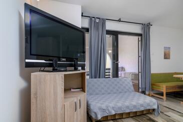 Az Apartman 5 főt tud fogadni. Az ágyak a/az 2 hálószobában, és a nappaliban/ben vannak, melynek méretei 47m2. A forró nyári estéket a vendégek saját teraszukon élvezhetik. A közös barbecue-helyet a vendég szabadon használhatja. A szállásegységbe lehetséges háziállatot hozni felár ellenében.