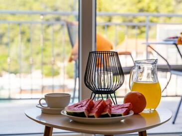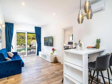 Az Apartman 4 főt tud fogadni. Az ágyak a/az 2 hálószobában vannak, melynek méretei 60m2. A forró nyári estéket a vendégek saját teraszukon élvezhetik. Az apartmanból tengerre néző kilátás nyílik. A vendégek itt tartózkodásuk ideje alatt használhatják a közös medencét. A szállásegység egyes helyiségei elkülönülnek a szállásegység többi részétől.