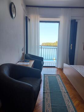 Az Szoba 2 főt tud fogadni. Az ágyak a/az 1 hálószobában vannak, melynek méretei 15m2. A forró nyári estéket a vendégek saját teraszukon élvezhetik. A szobából tengerre néző kilátás nyílik. A lefoglalt szállásegység szoba, mely közös fürdőszobát használ, és konyha használatára nincs lehetőség..