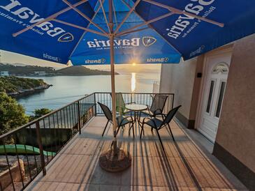 Az Apartman 6 főt tud fogadni. Az ágyak a/az 2 hálószobában, és a nappaliban/ben vannak, melynek méretei 45m2. A forró nyári estéket a vendégek saját teraszukon élvezhetik. Az apartmanból tengerre néző kilátás nyílik. A teljes élvezet és kikapcsolódás érdekében van saját barbecue hely is, csakis e szálláshely vendégei számára.