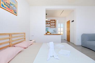 Az Stúdió 2 főt tud fogadni. Az ágyak a/az 1 hálószobában vannak, melynek méretei 17m2. A forró nyári estéket a vendégek saját balkonukon élvezhetik. A stúdióból tengerre néző kilátás nyílik. A közös barbecue-helyet a vendég szabadon használhatja. A szállásegységbe lehetséges háziállatot hozni, ennek költségét a foglalási díj tartalmazza.