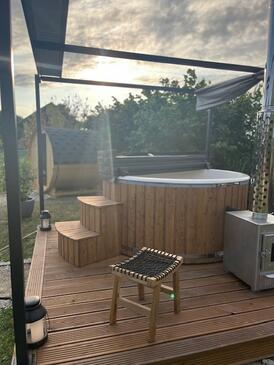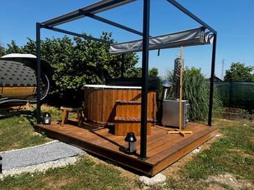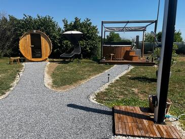 Az Apartman 4 főt tud fogadni. Az ágyak a/az 2 hálószobában, és a nappaliban/ben vannak, melynek méretei 60m2. A forró nyári estéket a vendégek saját teraszukon élvezhetik. A teljes élvezet és kikapcsolódás érdekében van saját barbecue hely is, csakis e szálláshely vendégei számára. A vendégek itt tartózkodásuk ideje alatt használhatják a közös medencét. A szállásegységbe lehetséges háziállatot hozni felár ellenében.