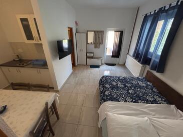 Az Apartman 4 főt tud fogadni. Az ágyak a/az 1 hálószobában, és a nappaliban/ben vannak, melynek méretei 28m2. A forró nyári estéket a vendégek saját teraszukon élvezhetik. A közös barbecue-helyet a vendég szabadon használhatja.