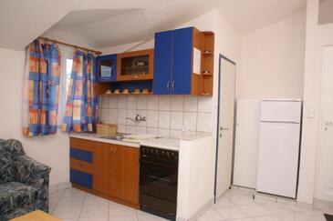 Az Apartman 6 főt tud fogadni. Az ágyak a/az 3 hálószobában vannak, melynek méretei 66m2. A forró nyári estéket a vendégek saját teraszukon élvezhetik. Az apartmanból tengerre néző kilátás nyílik. A közös barbecue-helyet a vendég szabadon használhatja. A szállásegységbe lehetséges háziállatot hozni felár ellenében.