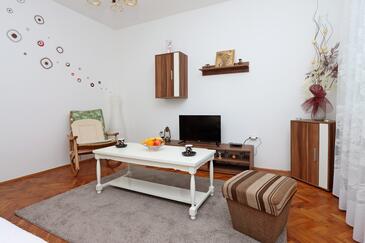 Az Apartman 6 főt tud fogadni. Az ágyak a/az 2 hálószobában, és a nappaliban/ben vannak, melynek méretei 71m2. A forró nyári estéket a vendégek saját teraszukon élvezhetik. Az apartmanból tengerre néző kilátás nyílik. A közös barbecue-helyet a vendég szabadon használhatja. A szállásegységbe lehetséges háziállatot hozni felár ellenében.