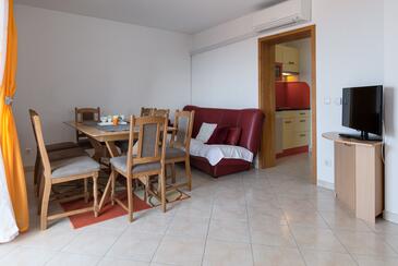 Az Apartman 8 főt tud fogadni. Az ágyak a/az 4 hálószobában vannak, melynek méretei 87m2. A forró nyári estéket a vendégek saját teraszukon élvezhetik. Az apartmanból tengerre néző kilátás nyílik. A közös barbecue-helyet a vendég szabadon használhatja.