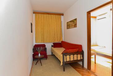 Az Apartman 5 főt tud fogadni. Az ágyak a/az 2 hálószobában, és a nappaliban/ben vannak, melynek méretei 49m2. A forró nyári estéket a vendégek saját teraszukon élvezhetik. Az apartmanból tengerre néző kilátás nyílik. A teljes élvezet és kikapcsolódás érdekében van saját barbecue hely is, csakis e szálláshely vendégei számára.