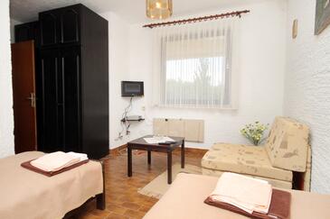 Az Apartman 4 főt tud fogadni. Az ágyak a/az 2 hálószobában vannak, melynek méretei 59m2. A forró nyári estéket a vendégek saját teraszukon élvezhetik. Az apartmanból tengerre néző kilátás nyílik. A közös barbecue-helyet a vendég szabadon használhatja.