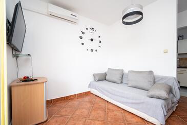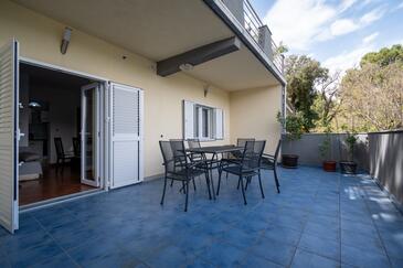 Az Apartman 6 főt tud fogadni. Az ágyak a/az 2 hálószobában, és a nappaliban/ben vannak, melynek méretei 46m2. A forró nyári estéket a vendégek saját teraszukon élvezhetik. Az apartmanból tengerre néző kilátás nyílik. A teljes élvezet és kikapcsolódás érdekében van saját barbecue hely is, csakis e szálláshely vendégei számára. A szállásegységbe lehetséges háziállatot hozni felár ellenében.