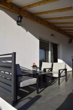 Az Ház 6 főt tud fogadni. Az ágyak a/az 2 hálószobában, és a nappaliban/ben vannak, melynek méretei 60m2. A forró nyári estéket a vendégek saját teraszukon élvezhetik. A házból tengerre néző kilátás nyílik. A teljes élvezet és kikapcsolódás érdekében van saját barbecue hely is, csakis e szálláshely vendégei számára. A vendégek itt tartózkodásuk ideje alatt használhatják a közös medencét. A szállásegységbe lehetséges háziállatot hozni felár ellenében. A lefoglalt szállásegység vendégeinek az érkezés napján a helyszínen letétet kell fizetniük (az összeg a honlapon fel van tüntetve).