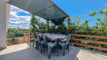 Az Apartman 8 főt tud fogadni. Az ágyak a/az 4 hálószobában vannak, melynek méretei 75m2. A forró nyári estéket a vendégek saját teraszukon élvezhetik. Az apartmanból tengerre néző kilátás nyílik. A közös barbecue-helyet a vendég szabadon használhatja.