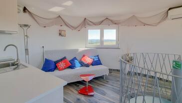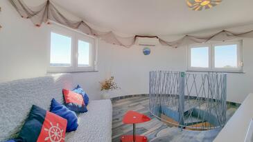 Az Apartman 4 főt tud fogadni. Az ágyak a/az 1 hálószobában, és a nappaliban/ben vannak, melynek méretei 27m2. A forró nyári estéket a vendégek saját teraszukon élvezhetik. Az apartmanból tengerre néző kilátás nyílik. A szállásegységbe lehetséges háziállatot hozni felár ellenében.