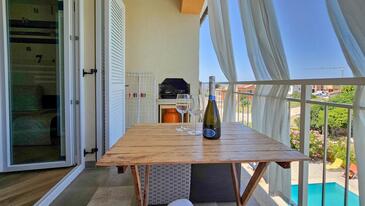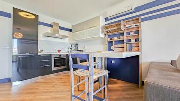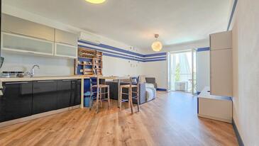 Az Apartman 3 főt tud fogadni. Az ágyak a/az 1 hálószobában, és a nappaliban/ben vannak, melynek méretei 36m2. A forró nyári estéket a vendégek saját balkonukon élvezhetik. Az apartmanból tengerre néző kilátás nyílik. A teljes élvezet és kikapcsolódás érdekében van saját barbecue hely is, csakis e szálláshely vendégei számára. A vendégek itt tartózkodásuk ideje alatt használhatják a közös medencét.