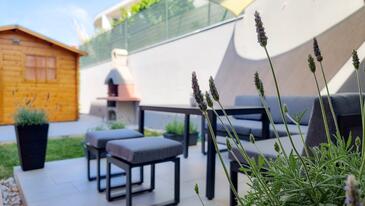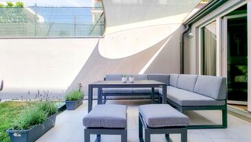 Az Apartman 5 főt tud fogadni. Az ágyak a/az 3 hálószobában vannak, melynek méretei 63m2. A forró nyári estéket a vendégek saját teraszukon élvezhetik. A teljes élvezet és kikapcsolódás érdekében van saját barbecue hely is, csakis e szálláshely vendégei számára.