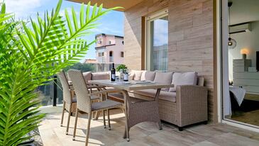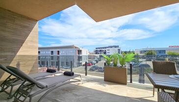 Az Apartman 6 főt tud fogadni. Az ágyak a/az 2 hálószobában, és a nappaliban/ben vannak, melynek méretei 59m2. A forró nyári estéket a vendégek saját teraszukon élvezhetik. A vendégek itt tartózkodásuk ideje alatt használhatják a közös medencét.