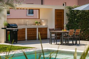 Az Apartman 4 főt tud fogadni. Az ágyak a/az 1 hálószobában, és a nappaliban/ben vannak, melynek méretei 70m2. A forró nyári estéket a vendégek saját teraszukon élvezhetik. A közös barbecue-helyet a vendég szabadon használhatja. A vendégek itt tartózkodásuk ideje alatt kikapcsolódás céljából használhatják a magán medencét.